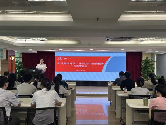 8月27日,半岛线上官网(中国)官方网站团委书记梁晨在广德大厦15楼会议室为各团组织书记、委员,本部及纺出公司团员青年,2024年新入职管培生共47人作学习贯彻党的二十届三中全会精神专题宣讲。在宣讲过程中,梁晨通过鲜活的语言、生动的案例,从深刻把握进一步全面深化改革的重要性和必要性,深刻认识进一步全面深化改革的指导思想和总目标、重大原则、重要部署,认真落实进一步全面深化改革的实践要求等方面深入浅出地对全会精神进行了系统阐述和解读。