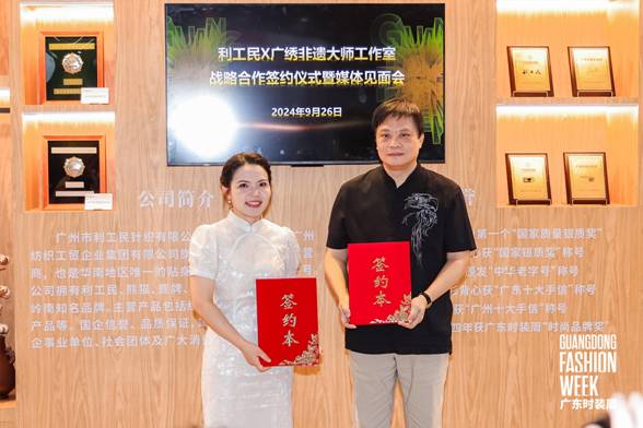 9月26日上午,百年中华老字号利工民与广绣非遗大师工作室在2024广东时装周-秋季举办战略合作签约仪式暨媒体见面会。活动由广东省服装服饰行业协会副会长兼秘书长陈韶通主持,邀请了广东省服装服饰行业协会、广东省服装设计师协会、半岛线上官网(中国)官方网站有限公司、服装行业企业代表和媒体代表等嘉宾出席共同见证本次活动。