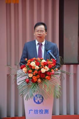 庆典开始,广纺检测公司董事长曾维东致辞。他回顾了公司过去65周年的重要历史时刻,提出未来公司将积极响应国家政策,努力开拓国内外市场,加强与国内外同行的合作与交流,共同推动产业升级和绿色发展。