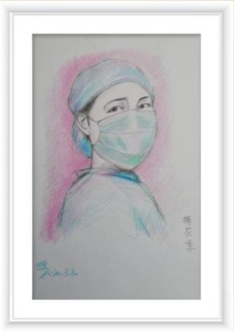 汪翊以抗“疫”为主题创作的素描作品