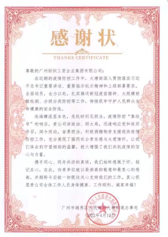 半岛线上官网(中国)官方网站第一时间响应越秀区商务局的抗疫捐献倡议,主动对接支援所在大塘街道,把属下百年国企老字号“利工民”居家毛巾精品迅速捐赠到街道办事处并将接力传递到接种疫苗的居民手中,让更多居民感受到街道“贴心利民”的关爱。